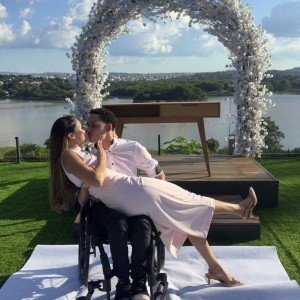 Meus amores, nem sei como agradecer o carinho por mim. Me pegaram de surpresa com o convite. Vocês são lindos juntos. Larissa, você foi um divisor de águas na vida do meu sobrinho. Existe um Ítalo antes de você, triste, calado, depressivo, dependente, desanimado. E outro depois de você, alegre, determinado, mais independente, motivado. Gratidão!